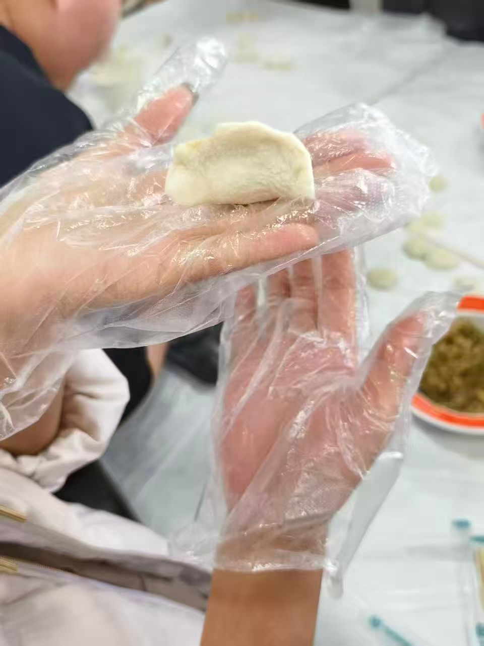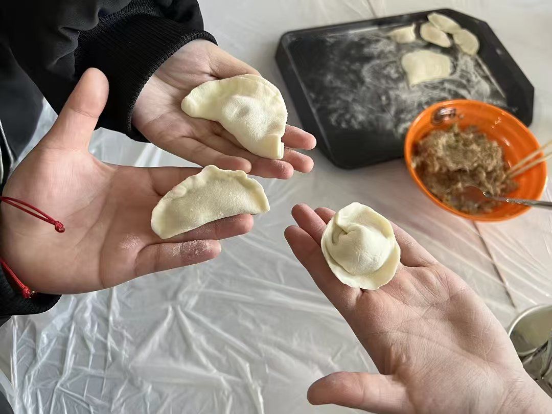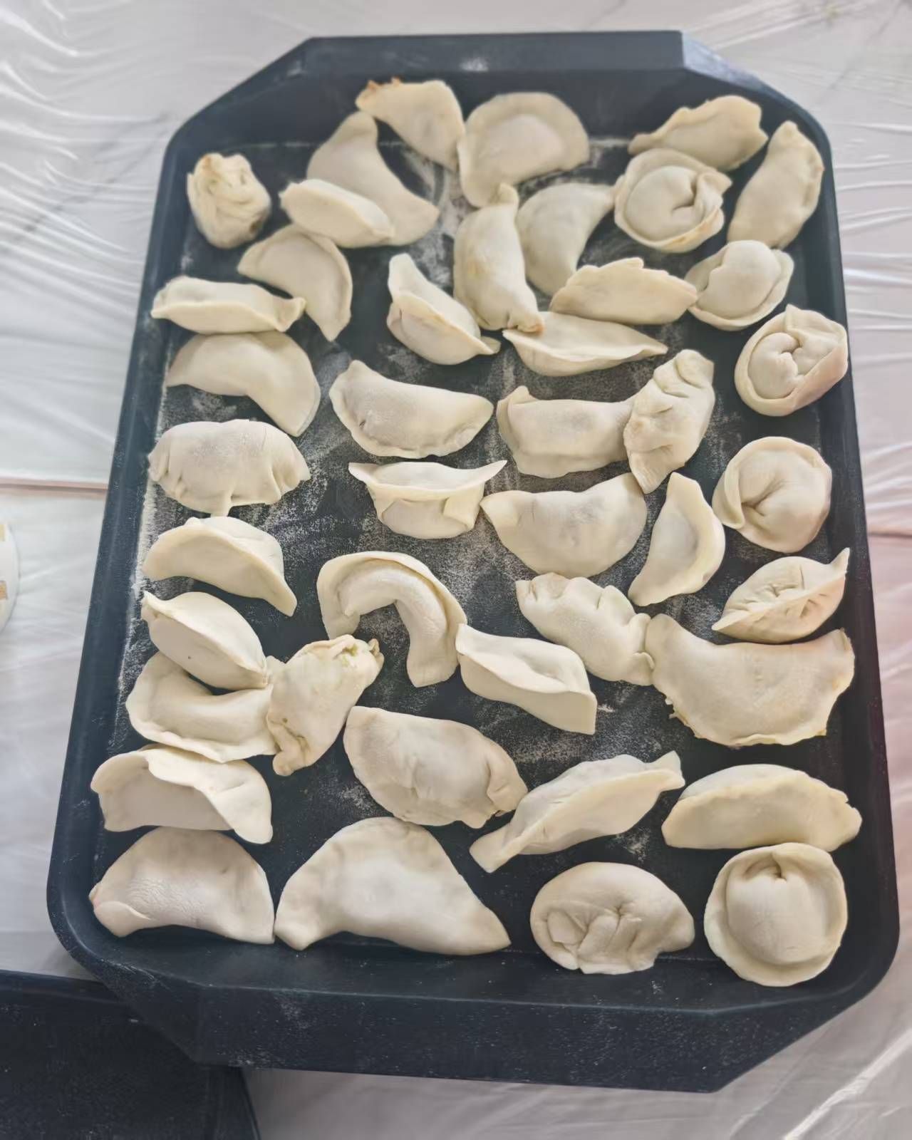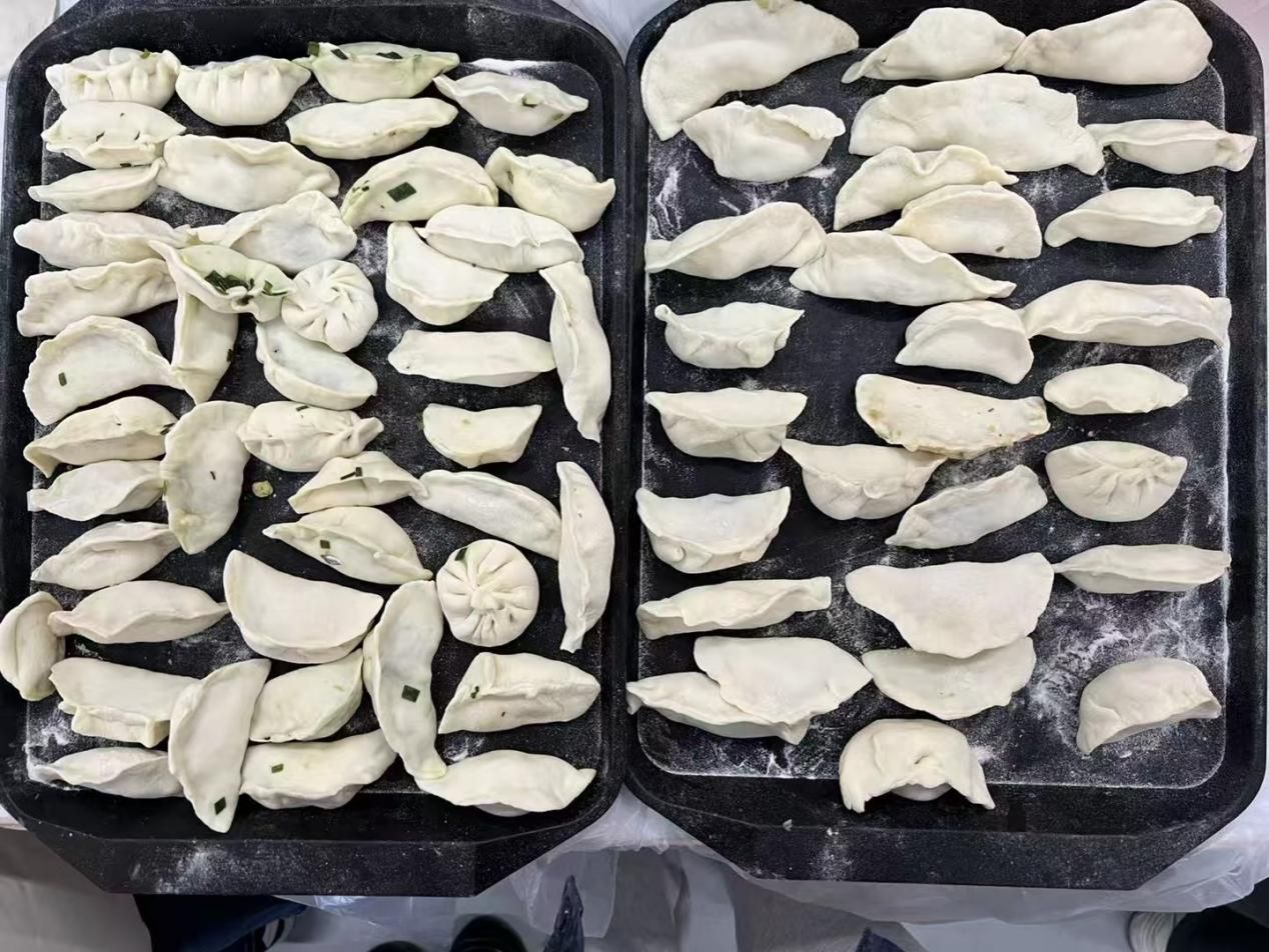 活动现场气氛热烈,老师和同学们一起包饺子,亲切交流家乡的冬至习俗,了解同学们近期的学习、生活情况。大家分工协作、默契配合,擀皮、包馅、捏褶。有的同学手法娴熟,捏、折、捻一气呵成,一个个形态饱满、花纹精致的饺子很快摆满托盘;有的同学虽是“新手”,但在身边同学的耐心指导下,也渐渐掌握了技巧,从最初的“歪歪扭扭”到后来的“有模有样”,脸上满是成就感。食堂内欢声笑语不断,待饺子煮熟出锅后,同学们品尝着自己亲手包的饺子,热气腾腾的饺子不仅温暖了大家的胃,更拉近了师生间的距离,让集体的归属感在欢笑中悄然凝聚。
