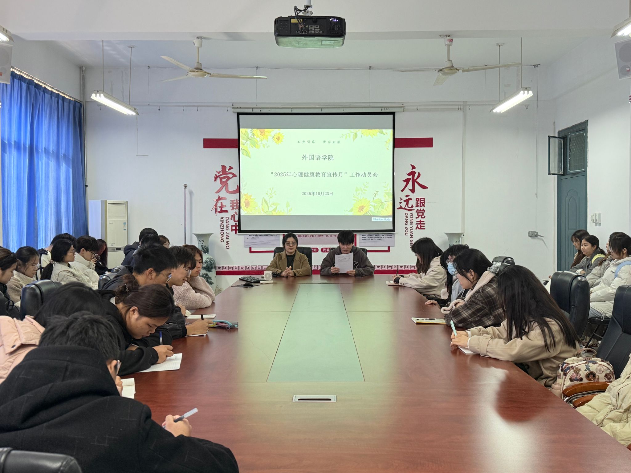 为持续贯彻落实习近平总书记关于加强学生心理健康教育工作的重要指示批示精神,扎实推进我院心理育人工作走深走实,有效提升大学生心理健康水平,10月23日中午,外国语学院召开2025年心理健康教育宣传月工作动员会。