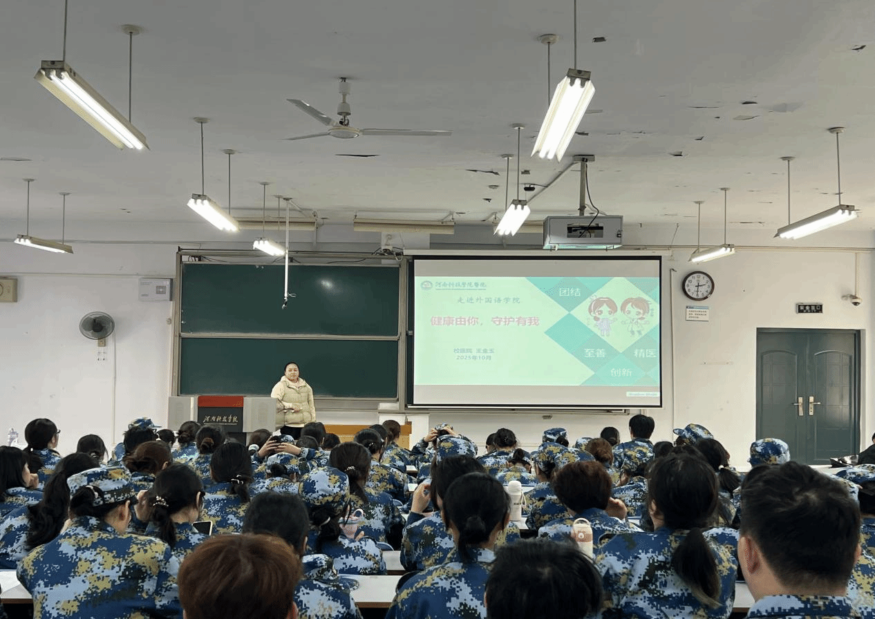 为引导新生了解传染病的相关知识,掌握预防传染病的知识和技能,养成文明健康的生活方式,10月31日下午,外国语学院在十号教学楼合六教室举办2025级新生入学健康教育讲座。讲座由校医院健康宣讲员王金玉主讲,2025级全体新生参加了此次讲座。