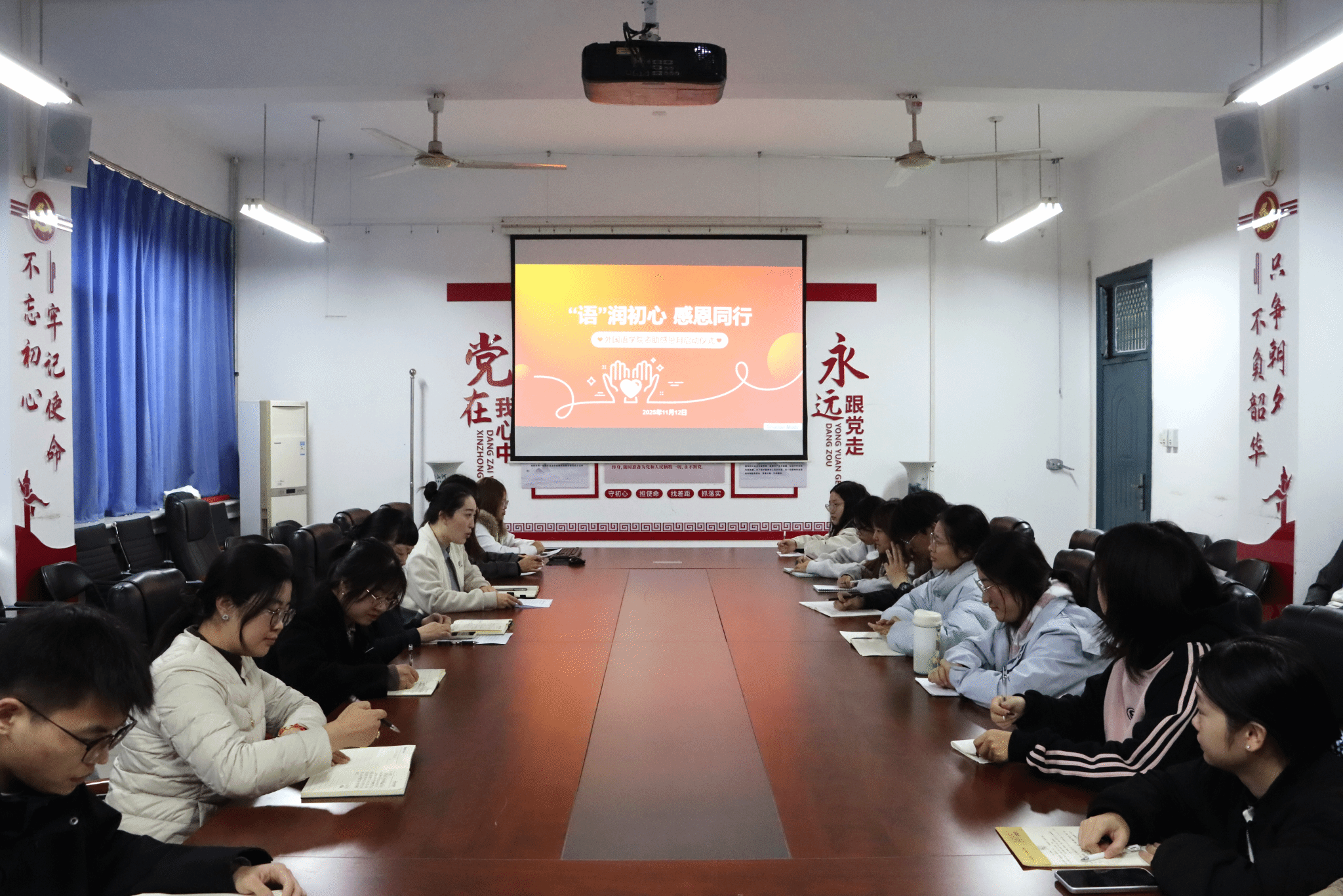 为培育学生感恩素养,厚植感恩文化根基,弘扬无私奉献的时代精神,强化责任担当与爱心传递的育人理念,11月12日下午,外国语学院于7211会议室成功举办“语”润初心、感恩同行——资助感恩月启动仪式。学院党委副书记、团委老师及主要学生干部共同参与本次活动。