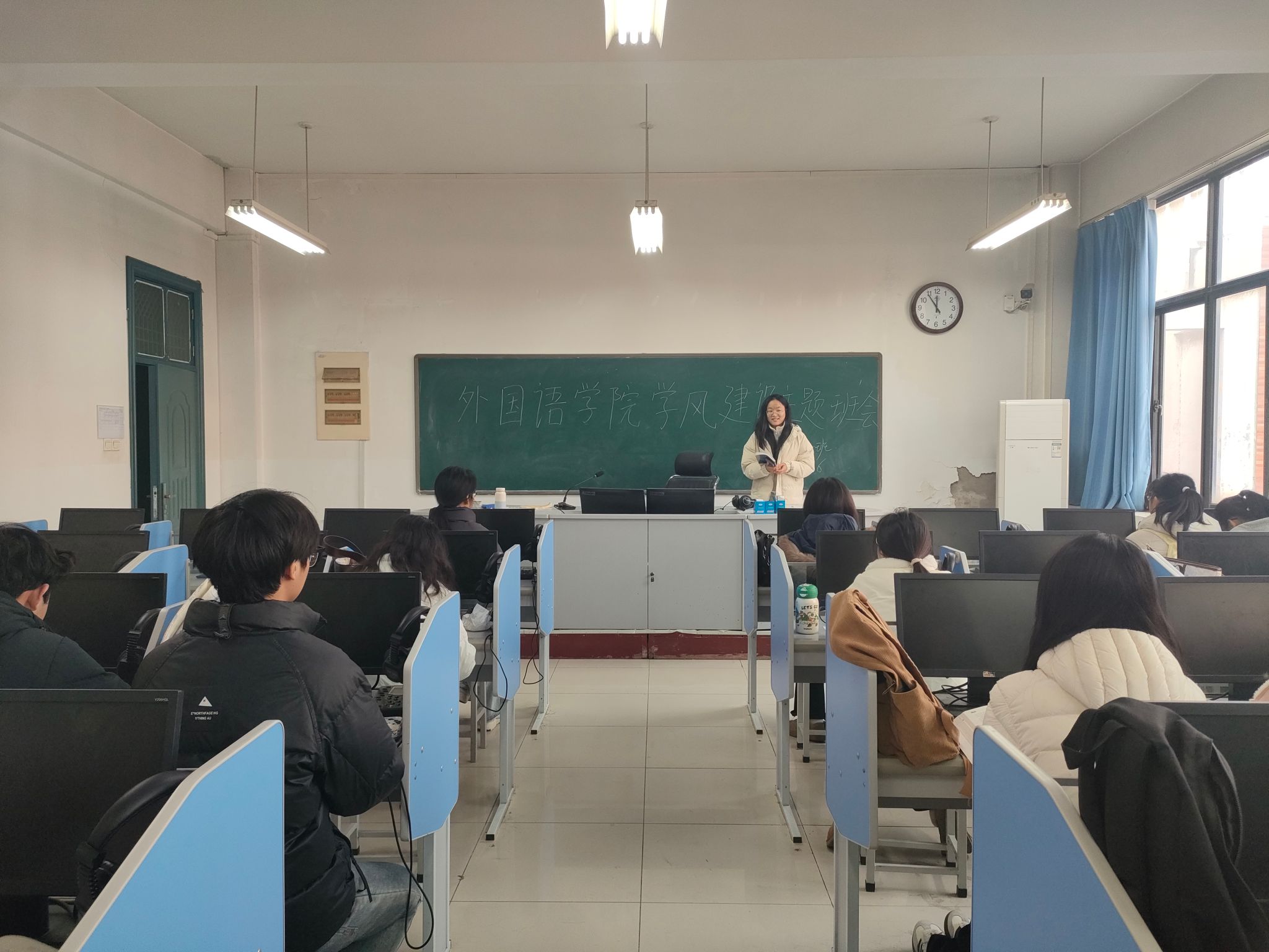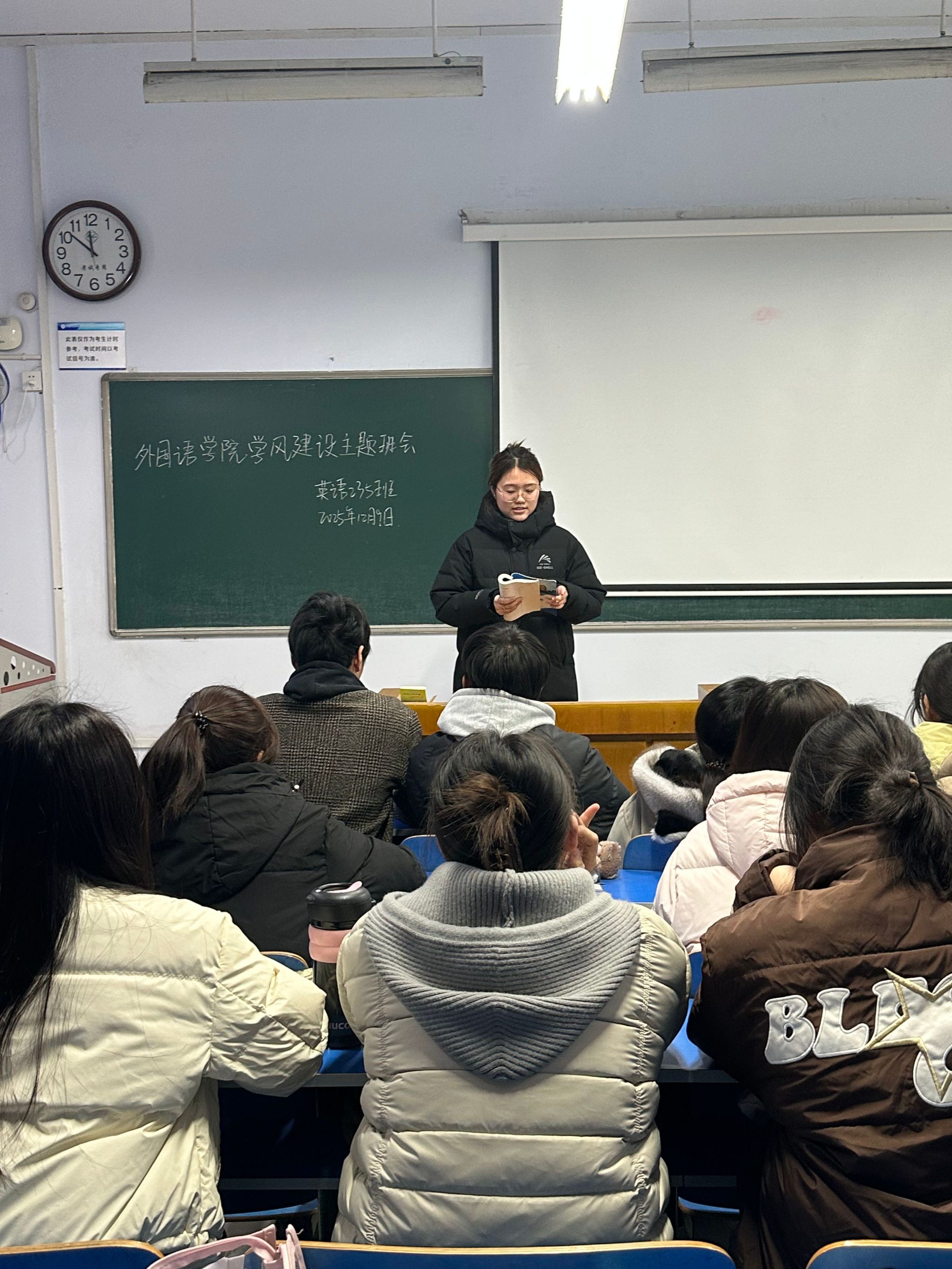 为进一步巩固新学期学风建设成果,严格落实《全面推进本科生学风建设工作十四条举措》,营造“比学赶帮超”的浓厚学习氛围,全力备战期末考试,12月9日至12日,外国语学院组织各班召开“筑优良学风 展青春风采”学风建设主题班会。