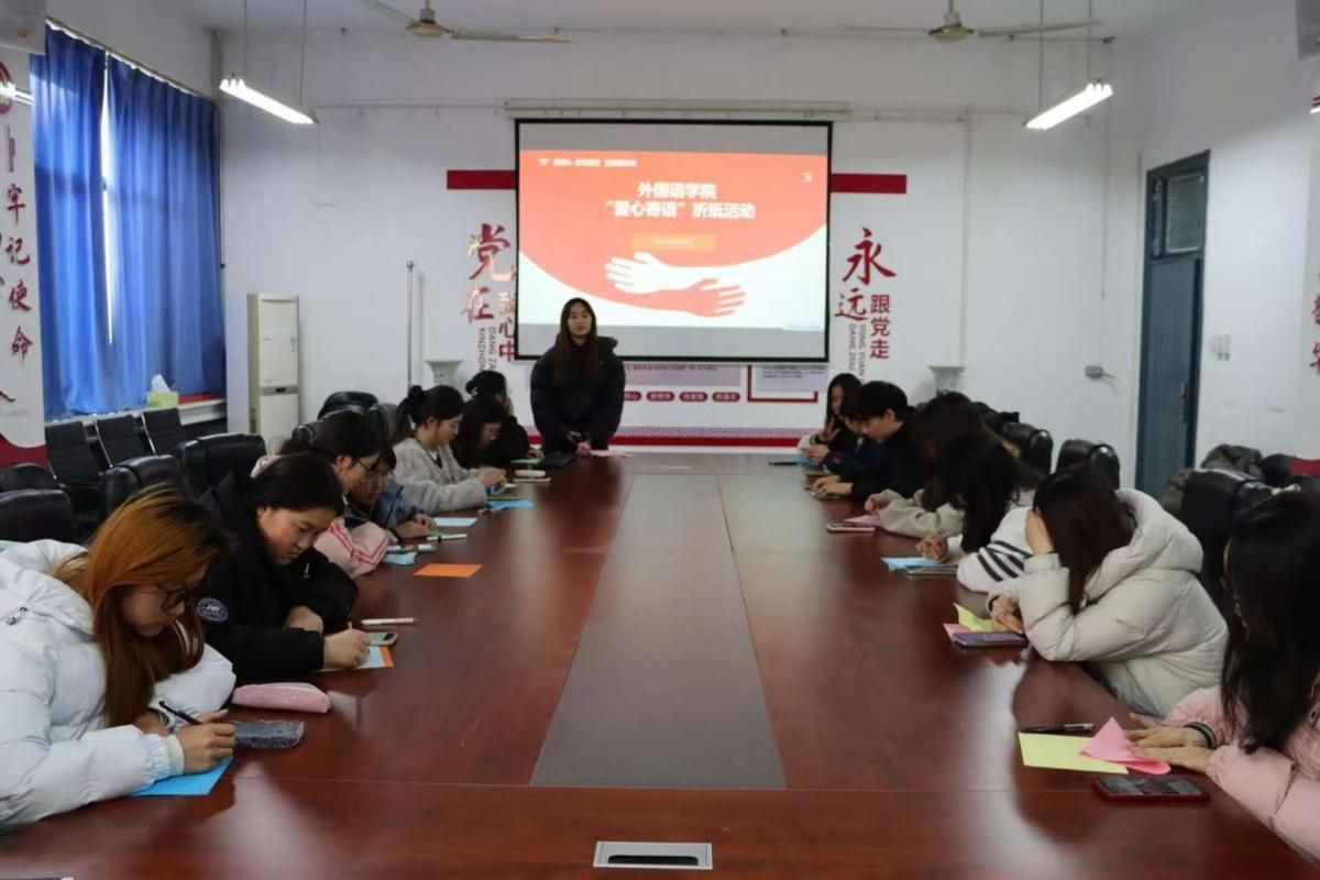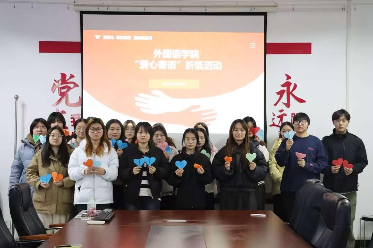 为丰富校园文化生活、响应资助感恩月活动号召,12月10日下午,外国语学院于7211会议室组织开展“爱心寄语”折纸主题活动,2025年受资助学生参与。