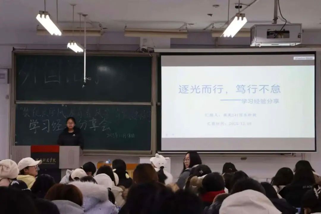 为充分发挥优秀学子的榜样引领作用,帮助同学们破解学习困惑、明晰学习方向、掌握科学学习方法,营造互助共进、勤学善思的优良学风,12月18日下午,外国语学院在十合六教室举办“薪火相传启智慧,经验共鉴促成长”学习经验分享会,学院各年级学生代表参加了分享会。