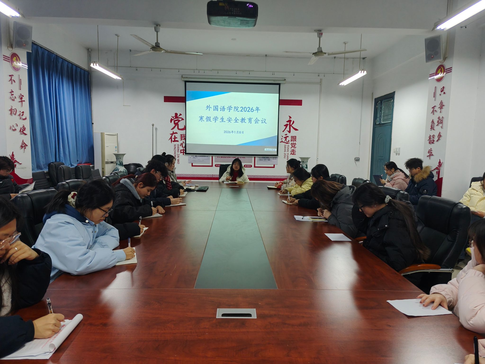 1月8日晚,外国语学院于7#211会议室召开2026年寒假学生安全教育会议。外国语学院全体辅导员以及各年级团支书和班长参与了此次会议。