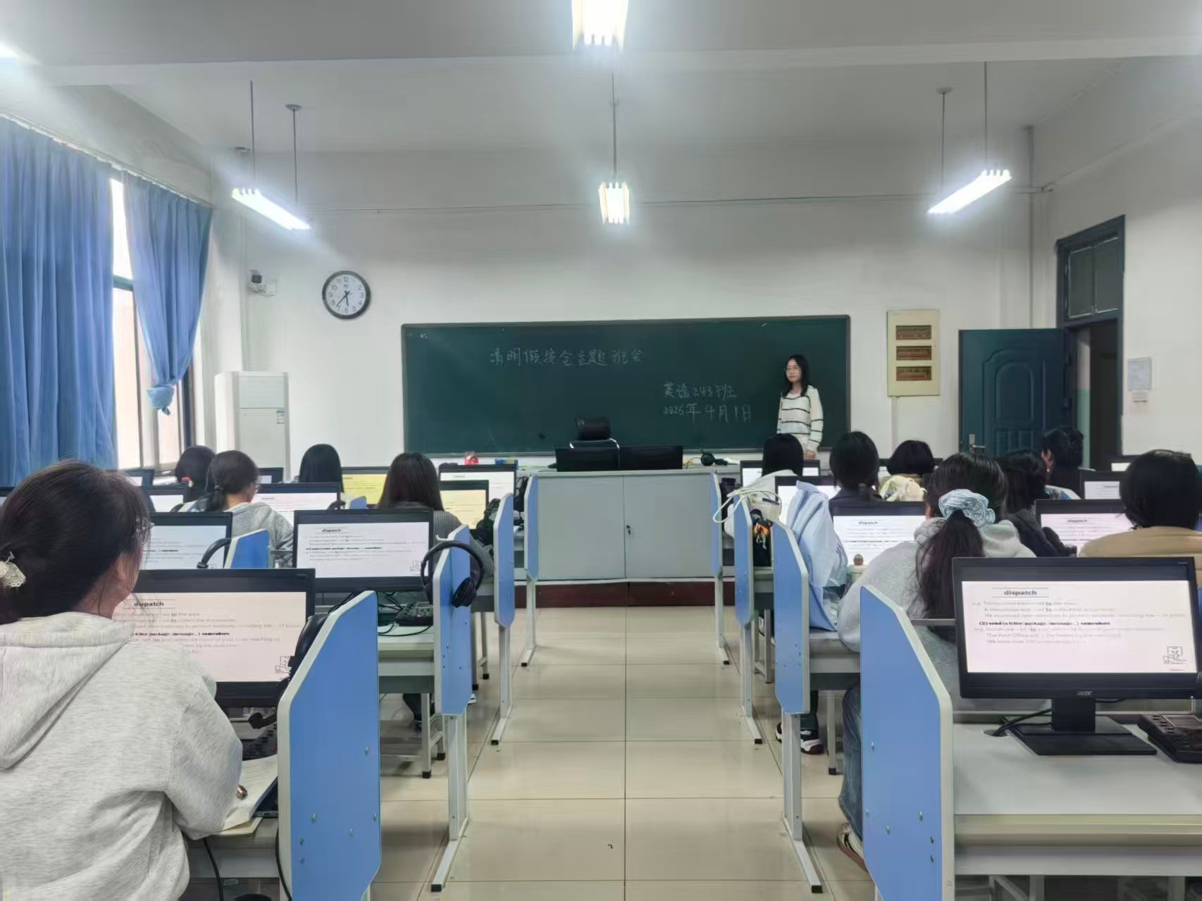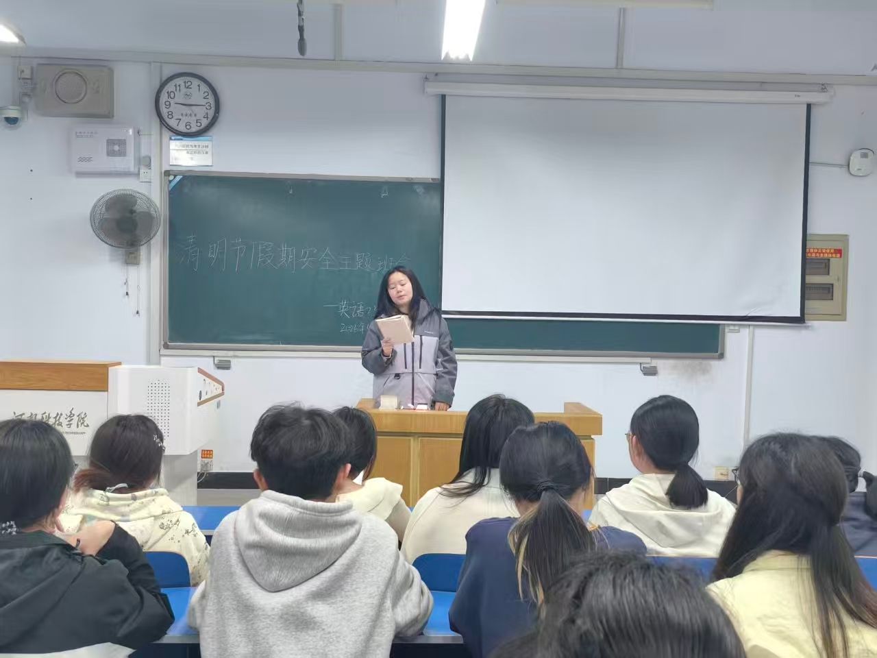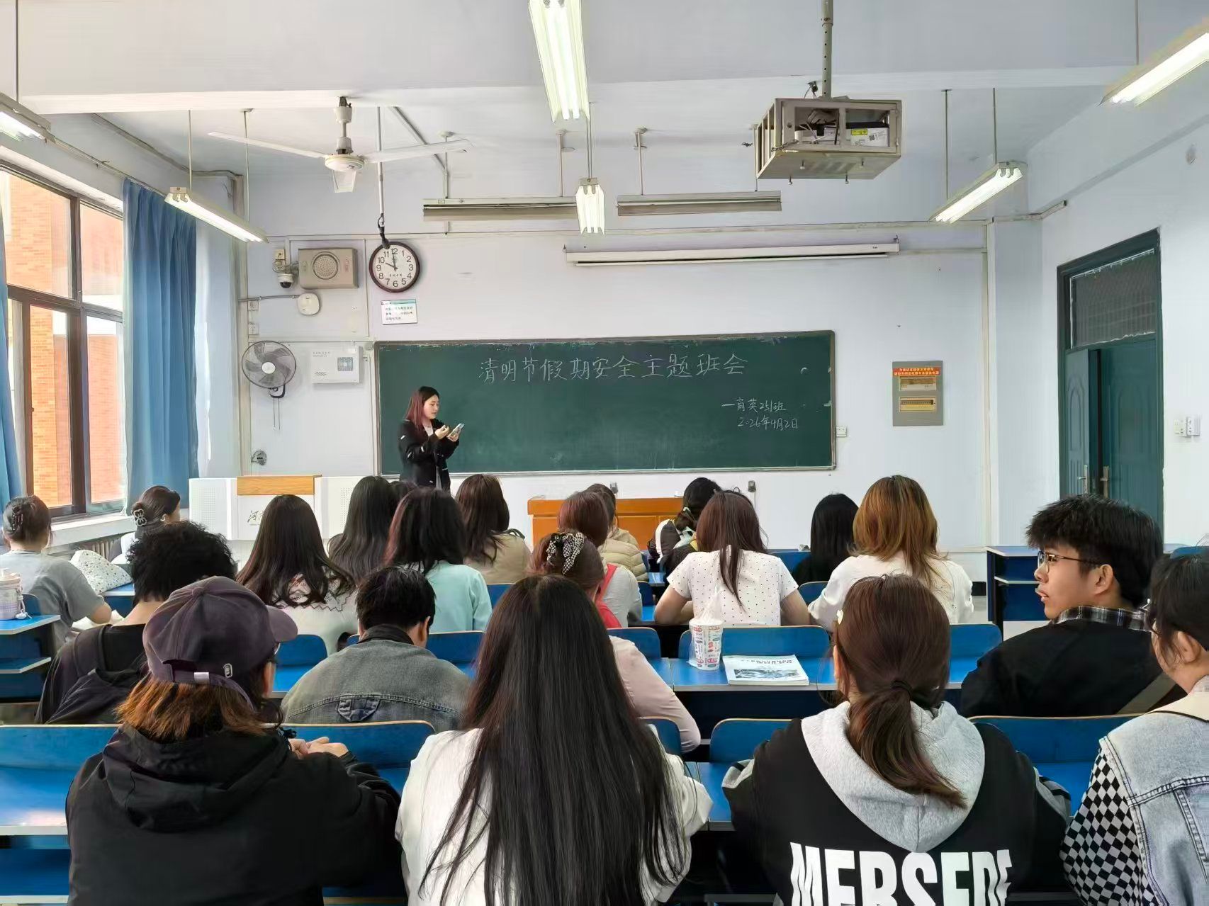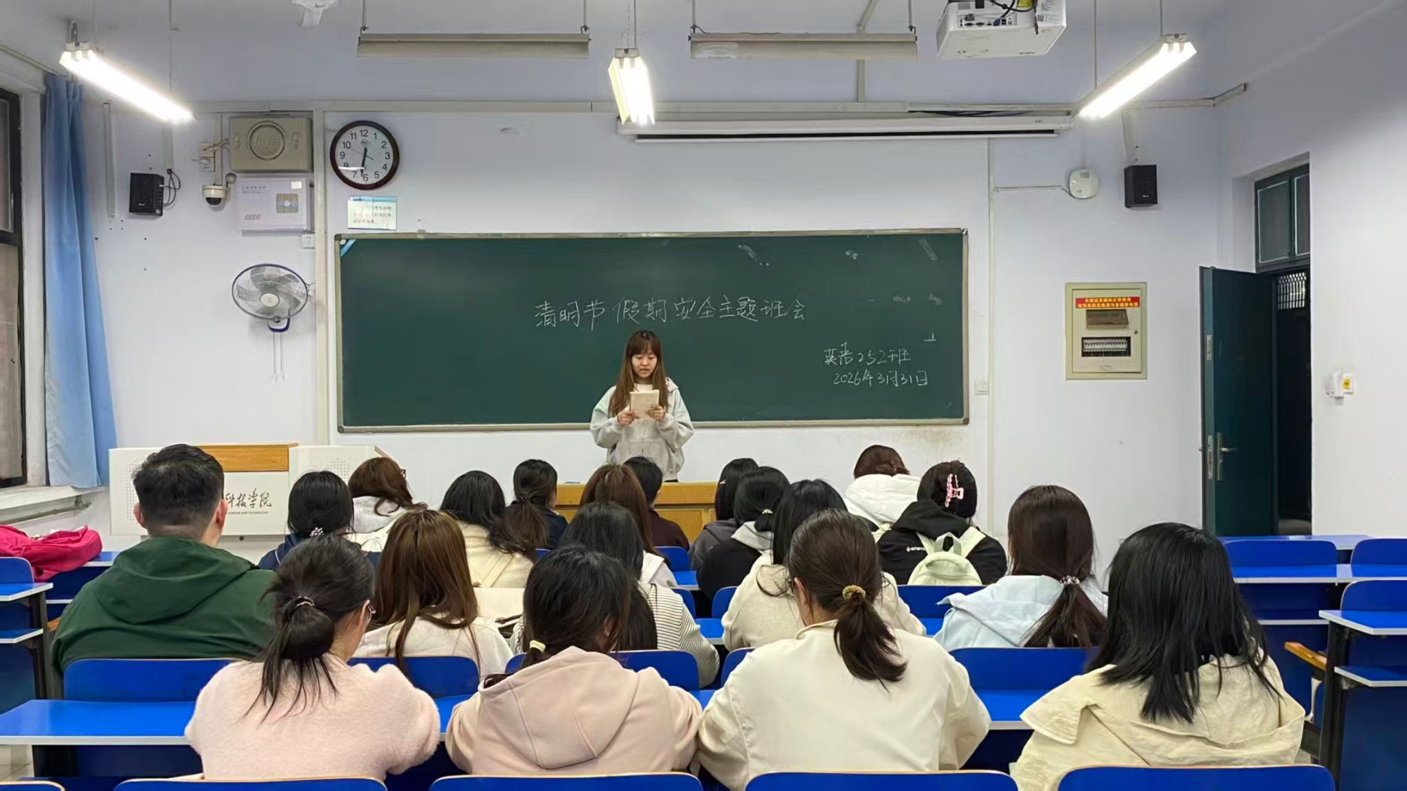 班会上,各班组织班级同学认真学习并签订了《外国语学院2026年清明假期学生安全承诺书》。