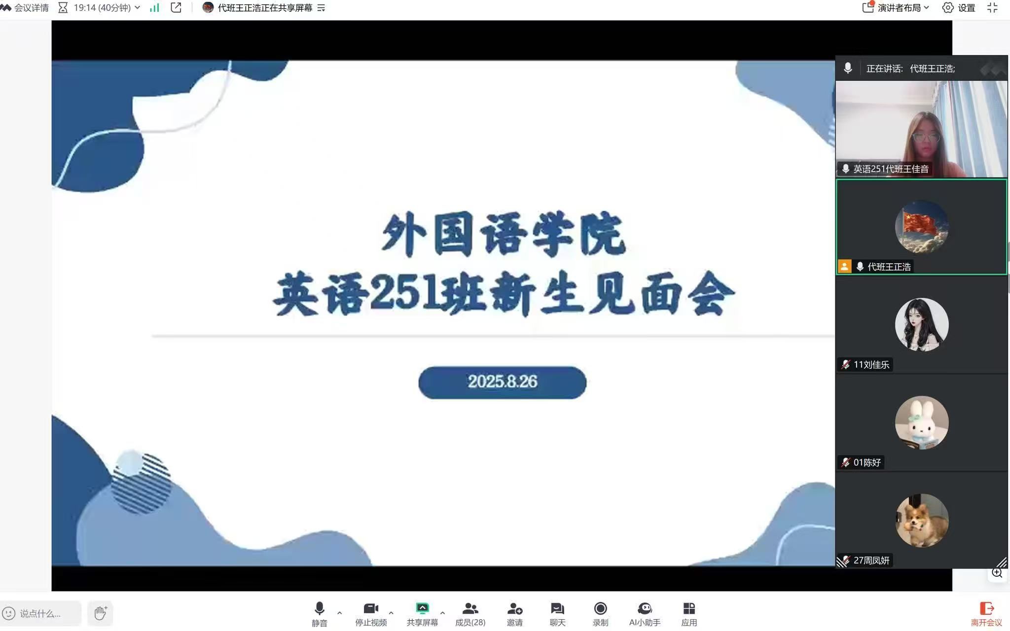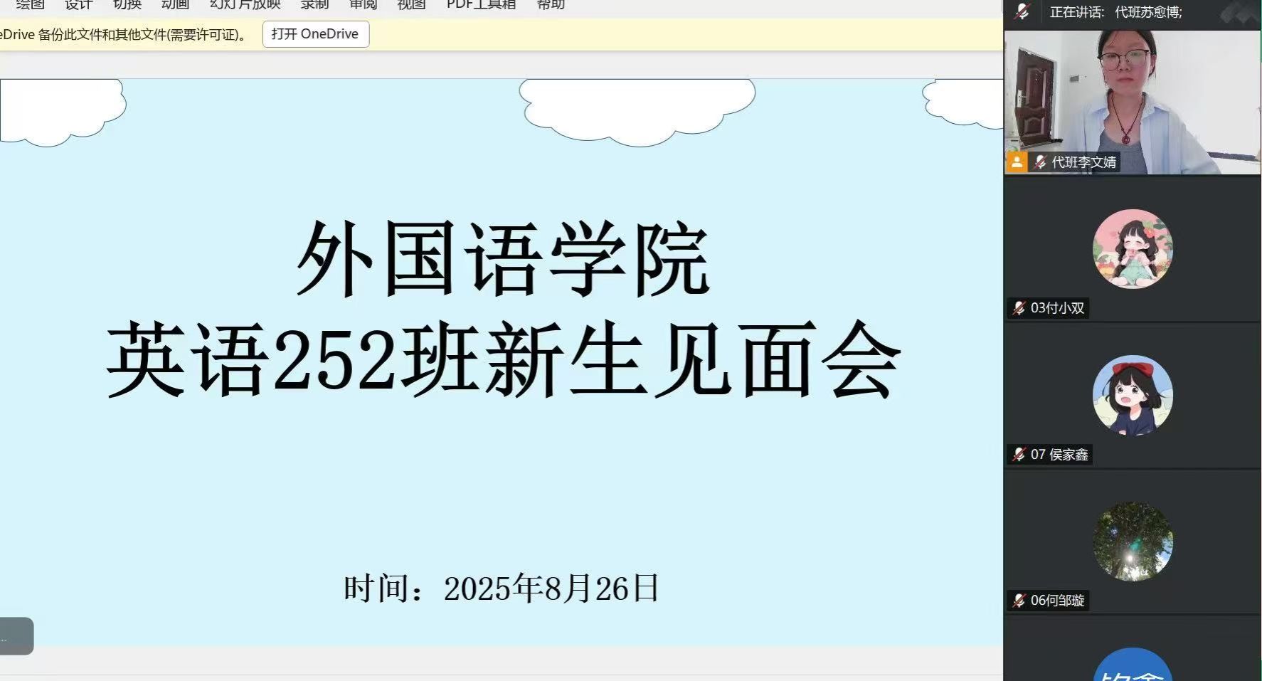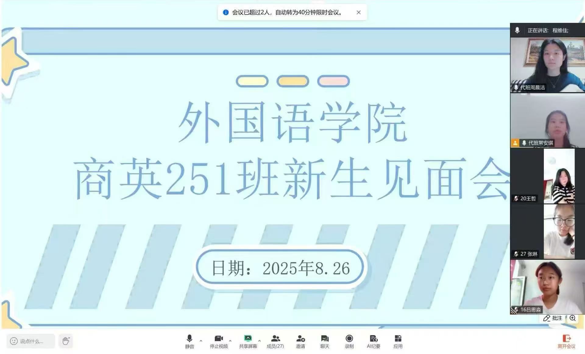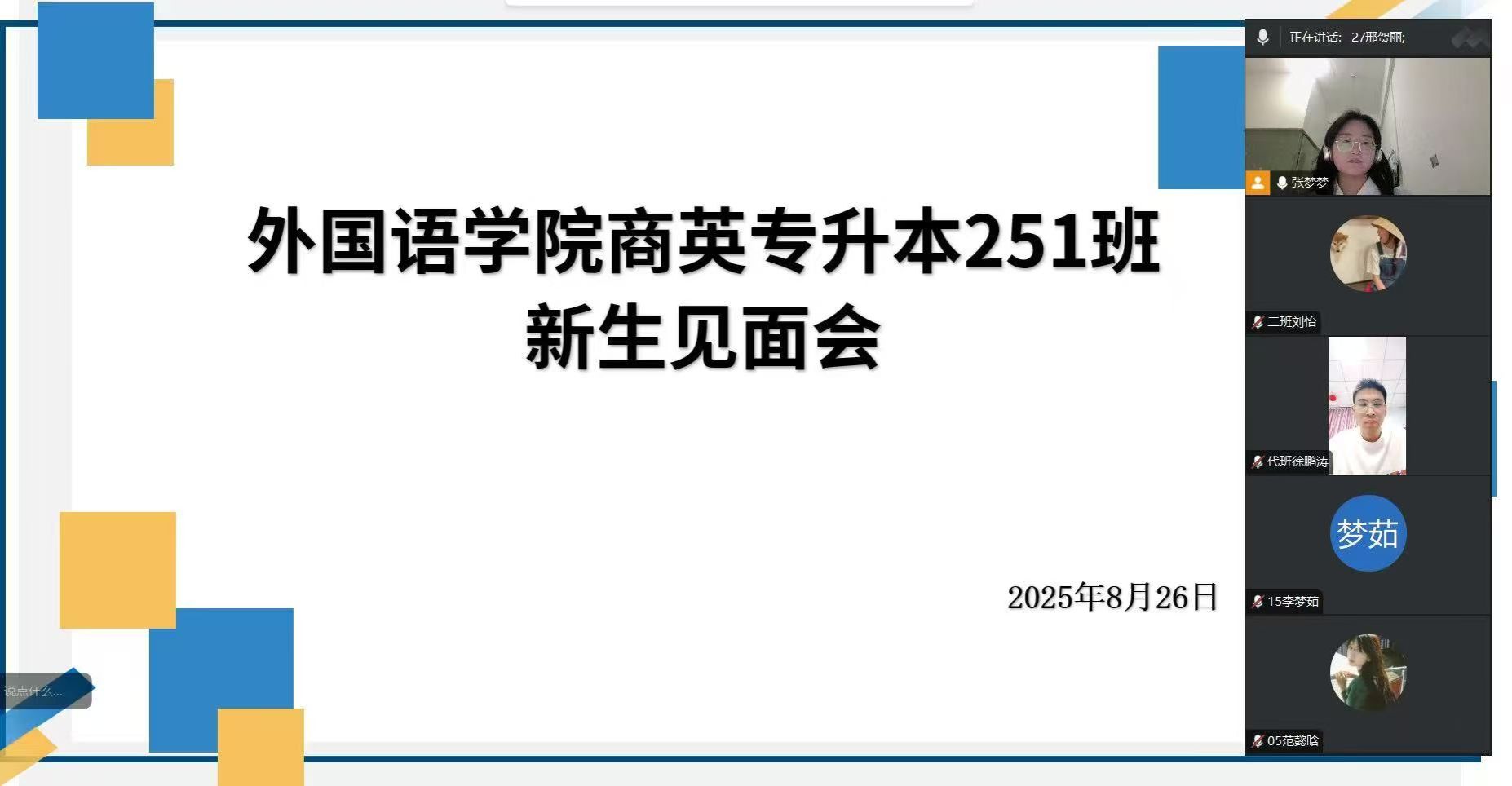 8月26日,外国语学院组织2025级新生代理班主任线上召开2025级新生见面会。