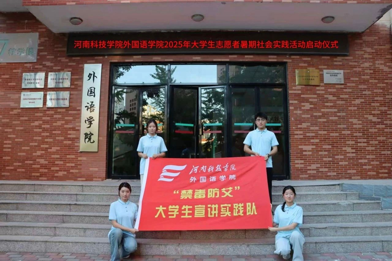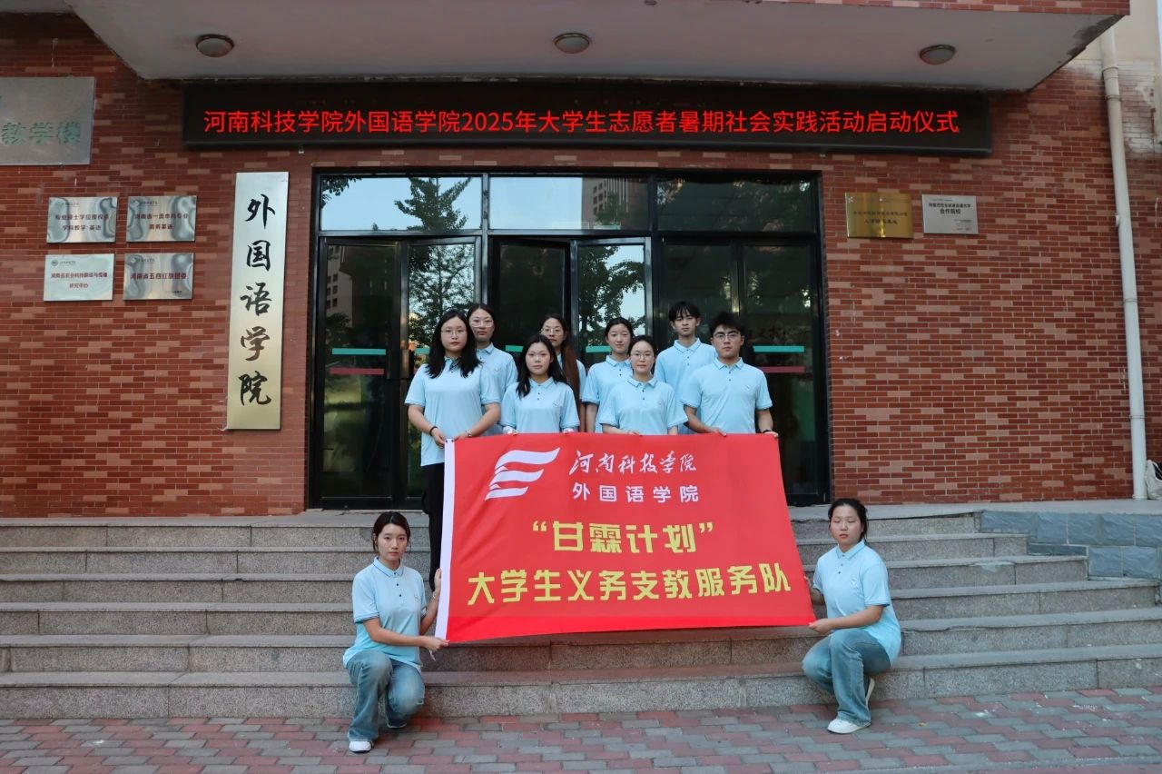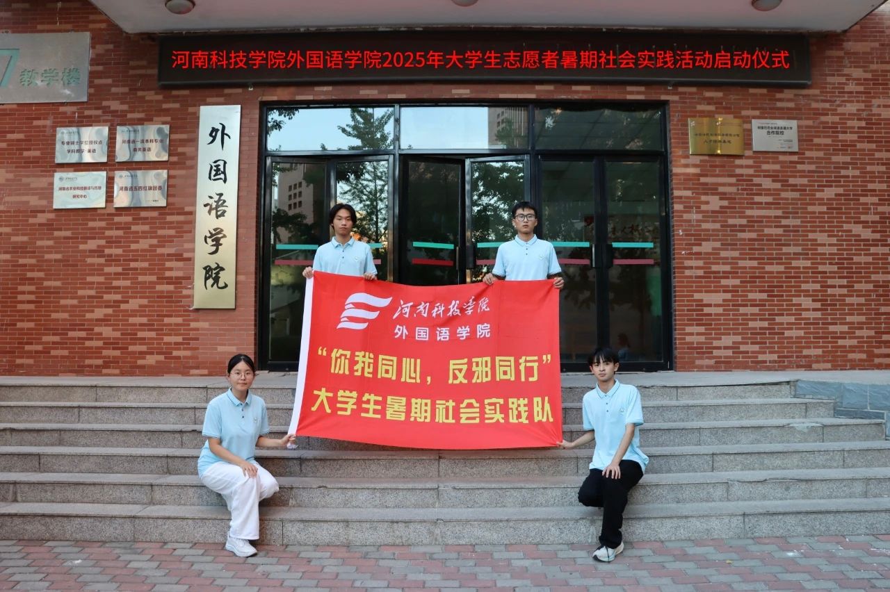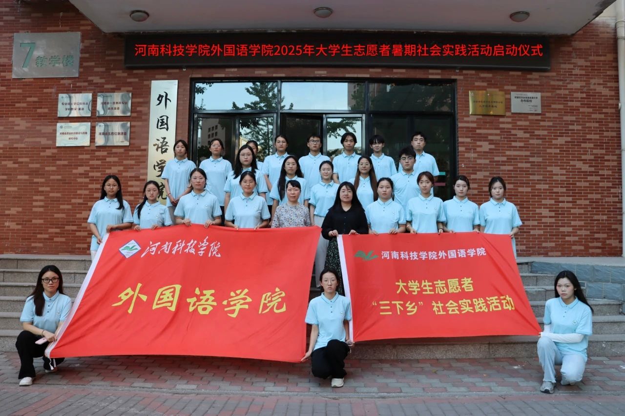 为深入学习贯彻党的二十大和二十届二中、三中全会精神,进一步提升实践育人质量,动员引领青年学生在投身基层建设、服务家乡发展中坚定信念、增长本领、作出贡献,做有理想、敢担当、能吃苦、肯奋斗的新时代好青年,7月4日下午,外国语学院在学院楼前举行2025年大学生志愿者暑期“三下乡”社会实践活动启动仪式。学院党委副书记吴峰,团委书记张慧和参加社会实践的学生代表参加了启动仪式。