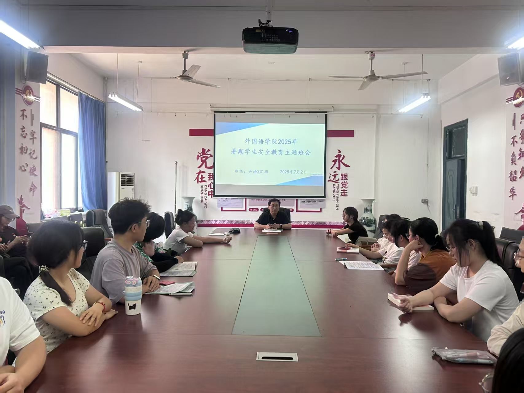 7月2日至3日,外国语学院以班级为单位组织召开2025年暑期学生安全教育主题班会。辅导员、各班班主任参加了此次班会。
