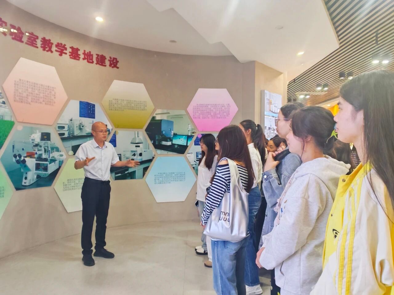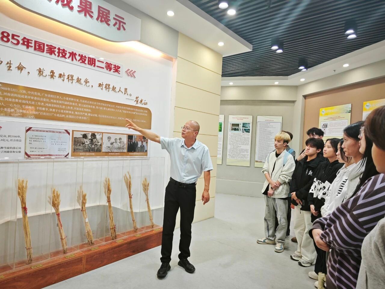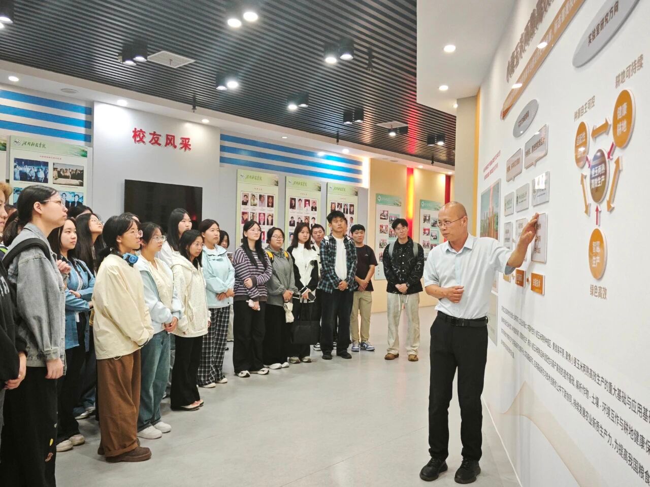 校史馆韩延安老师满怀深情地从校史篇、教学篇、科技篇、学生篇、未来篇等方面向新生们讲解了我校的发展历史以及在人才培养、科学研究、社会服务、文化传承等方面取得的辉煌成就。同学们在参观的过程中频频驻足,互相交流感悟,为学校取得的成就感到自豪。通过参观,不但使大家进一步了解了学校的发展历程,更深刻感受到了具有丰富内涵的科院文化和科院精神。