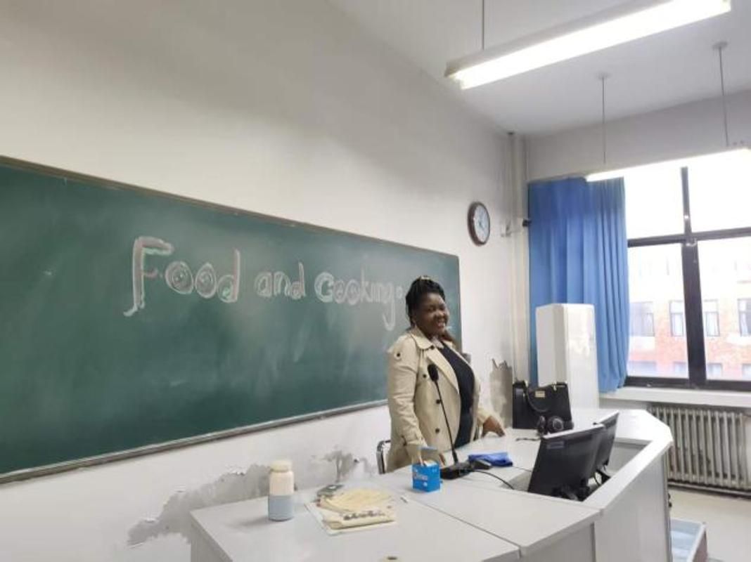 活动伊始,外教Bina以“披萨的制作过程与材料”为切入点,带领大家开启了一场“舌尖上的英语”。同学们用英文分享着自己钟爱的美食:有人说起家乡的特色小吃,有人推荐私藏的甜品食谱……简单的描述里满是对生活的热爱,也让教室瞬间变成了“跨国美食市集”。
