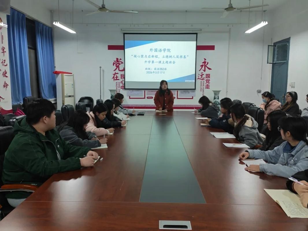 为进一步加强学生思想政治教育、学风建设与日常管理,筑牢学生安全防线,护航学生健康成长,引导学生以良好精神风貌投入新学期学习生活,3月16日至20日,外国语学院组织学院本科生、研究生以班级为单位召开“凝心聚力启新程 立德树人筑根基”开学第一课主题班会。各年级辅导员、各班班主任参加了此次班会。
